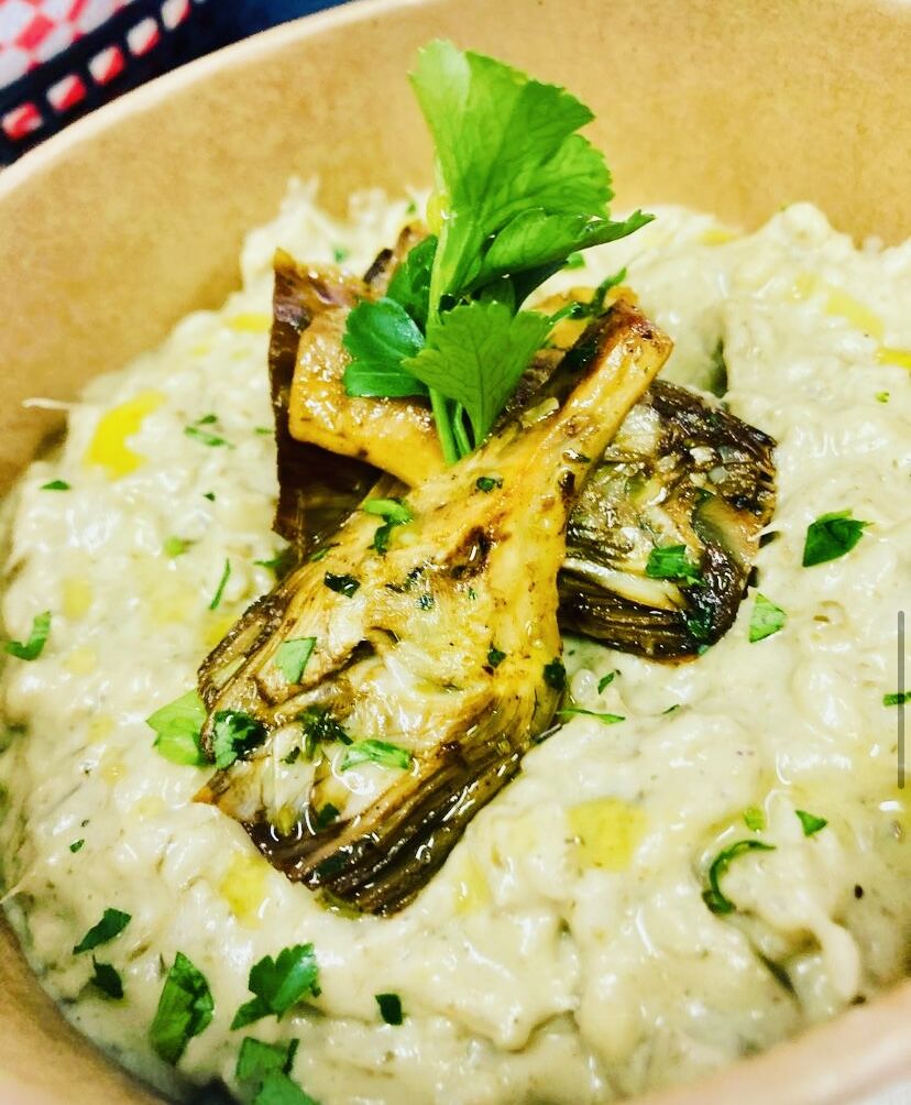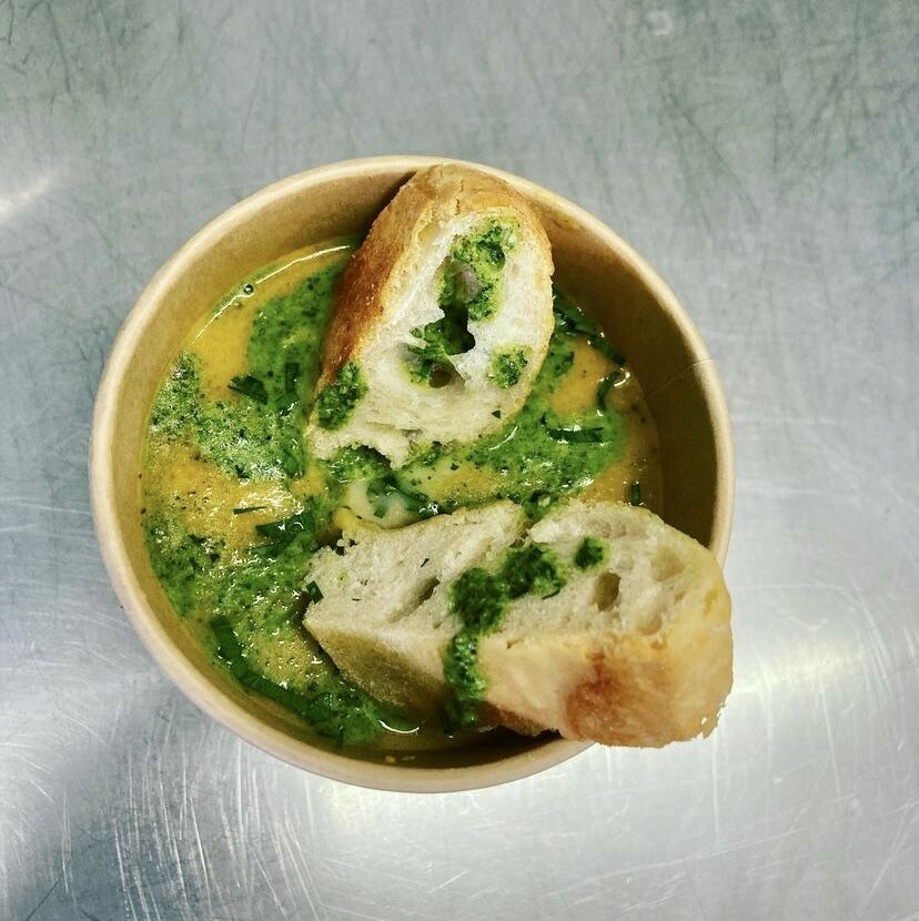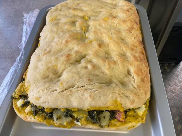 La pâte est levée pendant 24h à 48h, ils sont garnis à base de crème de légumes de saison.